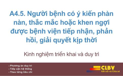 Tiêu chí A4.5 không chỉ đánh giá bệnh viện có kênh tiếp nhận ý kiến hay không, mà đánh giá cách bệnh viện lắng nghe, phản hồi và xử lý tiếng nói của người bệnh một cách tôn trọng, kịp thời và có trách nhiệm.