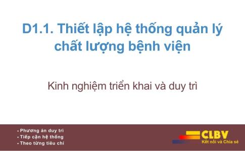D1.1. Thiết lập hệ thống quản lý chất lượng bệnh viện