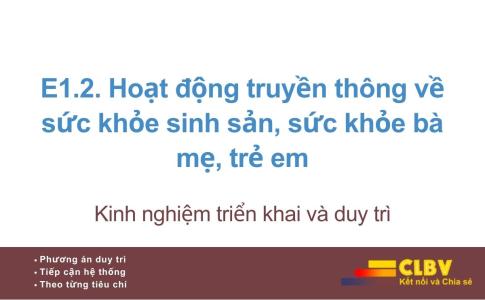 E1.2. Hoạt động truyền thông về sức khỏe sinh sản, sức khỏe bà mẹ, trẻ em
