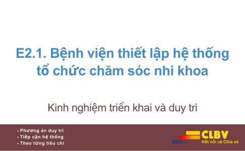 Tiêu chí E2.1 không yêu cầu bệnh viện phải có khoa Nhi quy mô lớn hay đầy đủ các phân khoa chuyên sâu, mà yêu cầu thiết lập được một hệ thống tổ chức chăm sóc nhi khoa phù hợp với tuyến chuyên môn, quy mô và chức năng nhiệm vụ của bệnh viện, bảo đảm trẻ em được chăm sóc an toàn, liên tục và đúng chuyên môn.