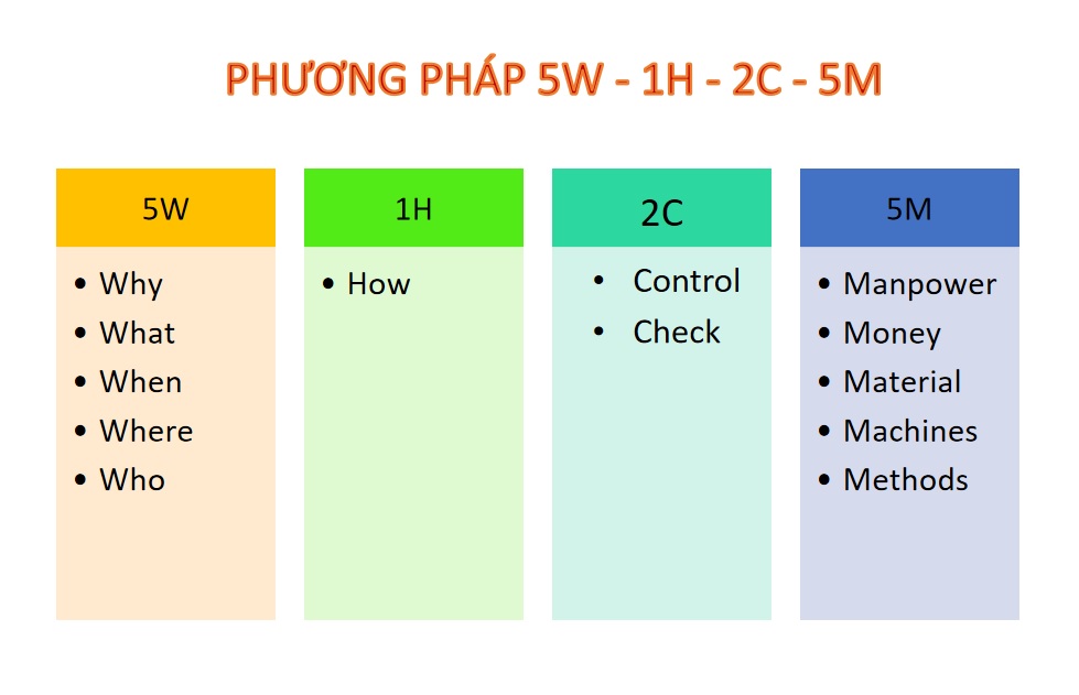 Gợi ý: Sử dụng mô hình 5W1H2C5M cho các dự án lớn, hoạt động có liên quan đến nhiều bộ phận hoặc cần báo cáo chất lượng định kỳ.