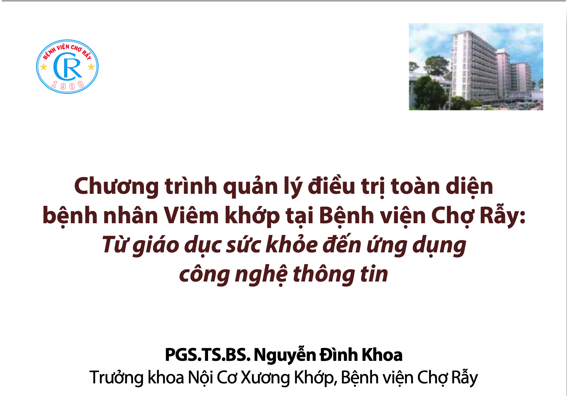 Chương trình quản lý, điều trị toàn diện bệnh nhân Viêm khớp tại Bệnh viện Chợ Rẫy: Từ giáo dục sức khỏe đến ứng dụng công nghệ thông tin - PGS.TS.BS. Nguyễn Đình Khoa Trưởng khoa Nội cơ xương khớp, Bệnh viện Chợ Rẫy