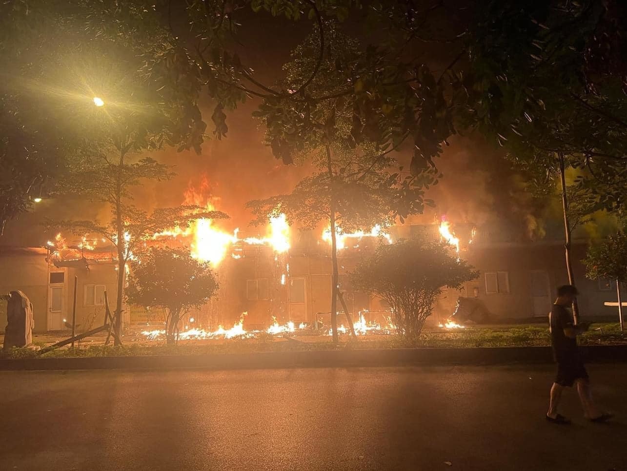 Khoảng 21h, lửa xuất phát từ cuối kho vật tư, sau 15 phút lan hết kho và nhà ăn một tầng, lợp tôn nằm cạnh cổng ra vào Bệnh viện Đức Giang, phố Trường Lâm, phường Đức Giang, quận Long Biên.