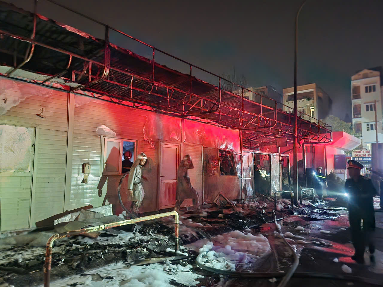 Khoảng 10 phút sau khi lửa bùng lên, bốn xe cứu hỏa của Công an quận Long Biên được điều động tới hiện trường, tới 22h dập tắt đám cháy.