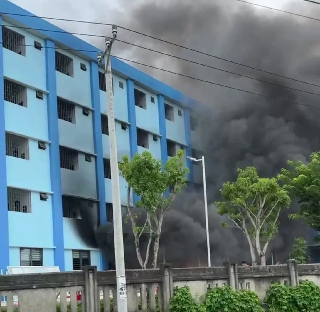 Cháy nhiều xe máy ở nhà xe nhân viên của một bệnh viện tại huyện Thăng Bình, Quảng Nam, ngọn lửa bùng lên dữ dội, cột khói bốc nghi ngút.