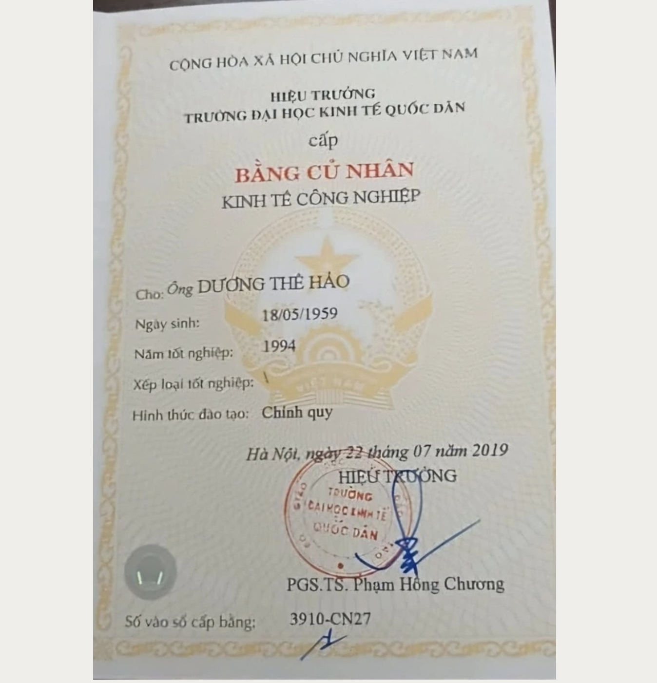 Ông Hảo cho hay, năm 1989 ông hoàn thành tất cả môn học và vượt qua kỳ thi tốt nghiệp với số điểm đạt trở lên, nhận được giấy xác nhận đã thi tốt nghiệp và đợi cấp bằng.