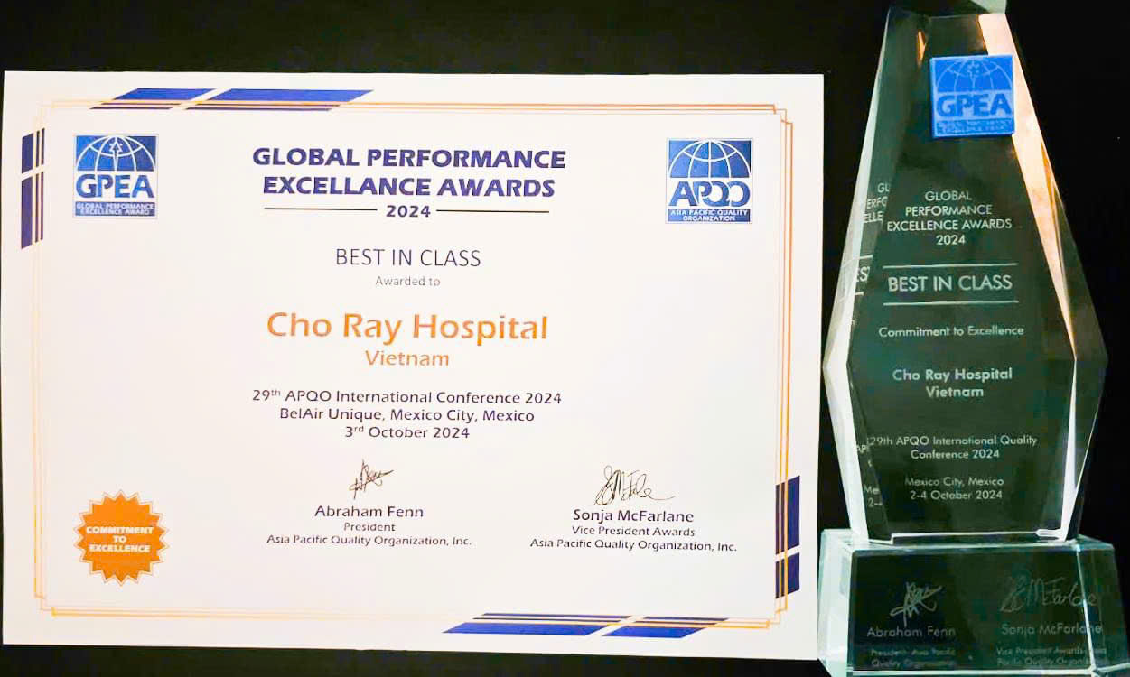 Từ ngày 1-5/10/2024, tại Mexico đã diễn ra sự kiện Giải thưởng Chất lượng Quốc tế Châu Á – Thái Bình Dương (Global Performance Excellence Award - GPEA) do Tổ chức Chất lượng Châu Á – Thái Bình Dương (APQO) sáng lập. Tại chương trình, bệnh viện Chợ Rẫy đã vinh dự đạt được giải thưởng ở hạng mục Best In Class năm 2024, đánh dấu cột mốc quan trọng khi trở thành bệnh viện đầu tiên của Việt Nam nhận được danh hiệu này tại GPEA.