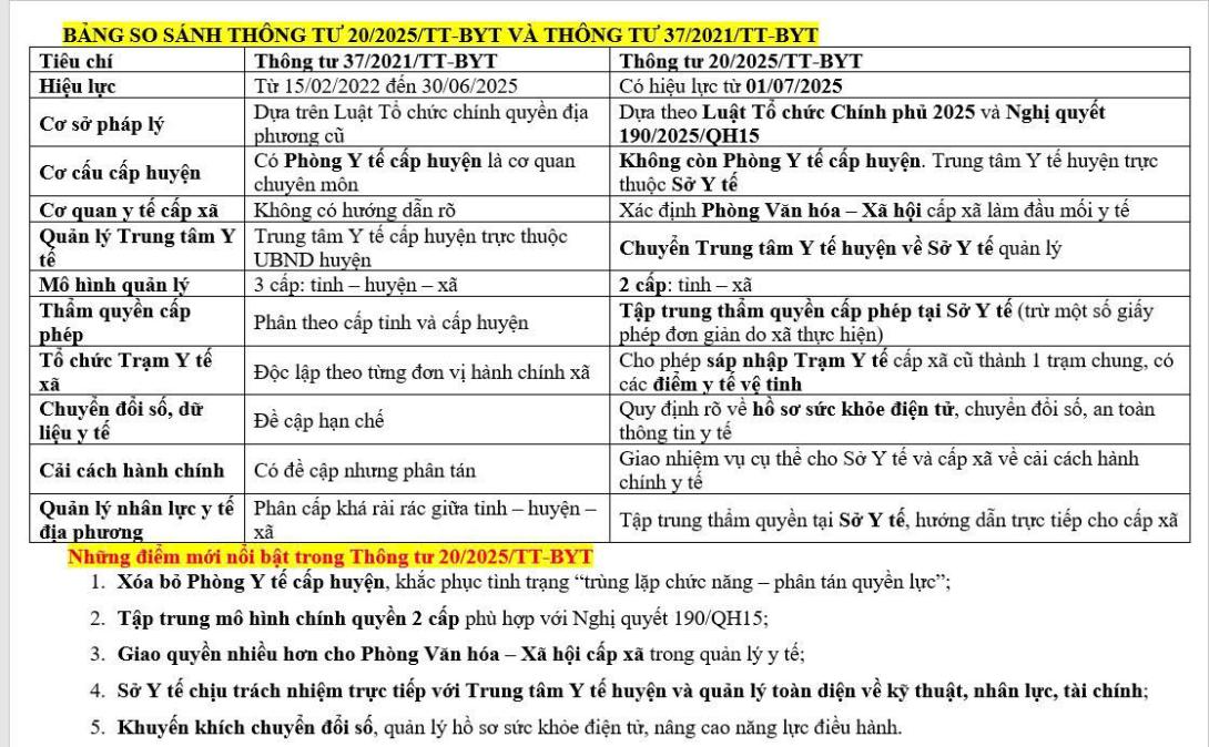 Thông tư 20/2025/TT-BYT: Mở rộng hơn, bao gồm cả cơ quan chuyên môn cấp xã (Phòng Văn hóa - Xã hội), phù hợp với mô hình chính quyền địa phương 2 cấp. Đây là điểm mới đáng chú ý.