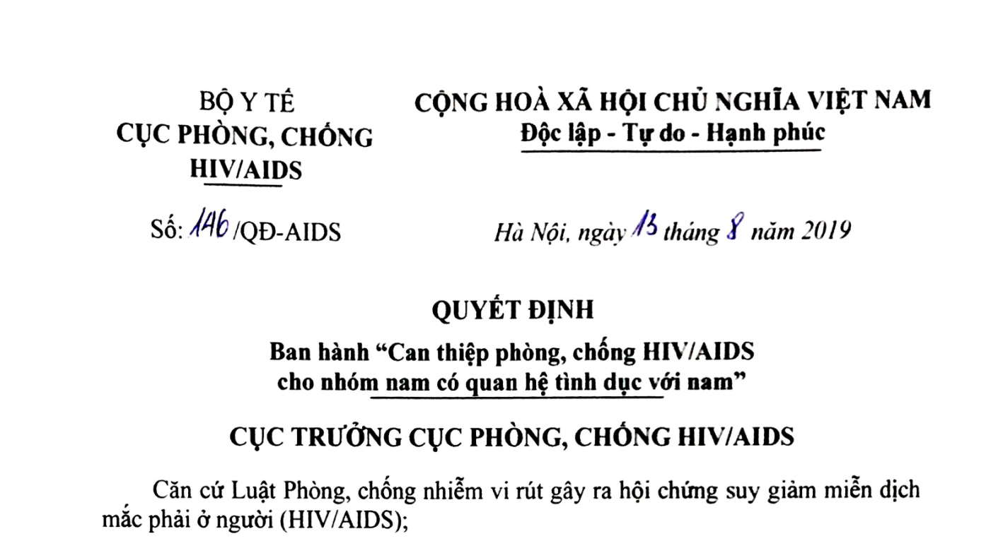 BAN HÀNH “CAN THIỆP PHÒNG, CHỐNG HIV/AIDS CHO NHÓM NAM CÓ QUAN HỆ TÌNH DỤC VỚI NAM”
