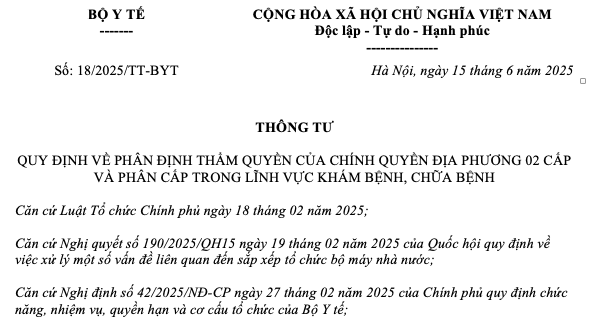 Số: 18/2025/TT-BYT | Hà Nội, ngày 15 tháng 6 năm 2025 |