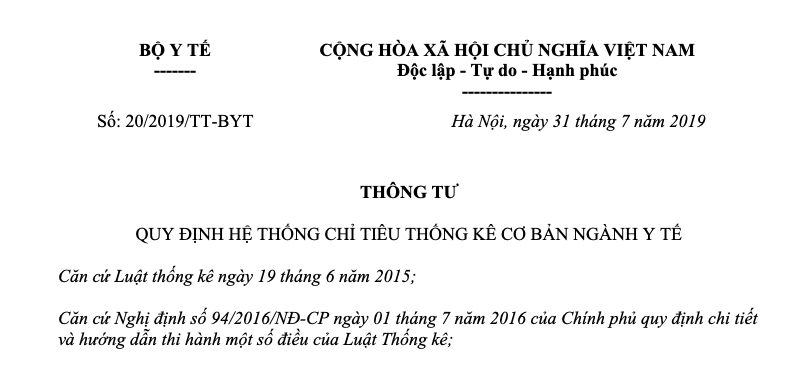 a) Thông tư số 06/2014/TT-BYT ngày 14 tháng 02 năm 2014 của Bộ trưởng Bộ Y tế ban hành danh mục hệ thống chỉ số thống kê cơ bản ngành y tế;