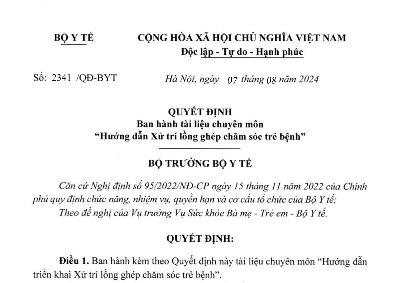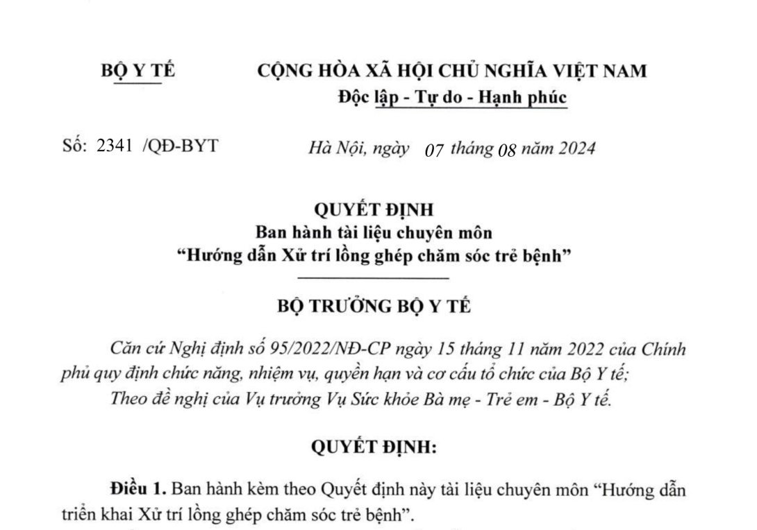 Số: 2341/QĐ-BYT | Hà Nội, ngày 07 tháng 08 năm 2024 |