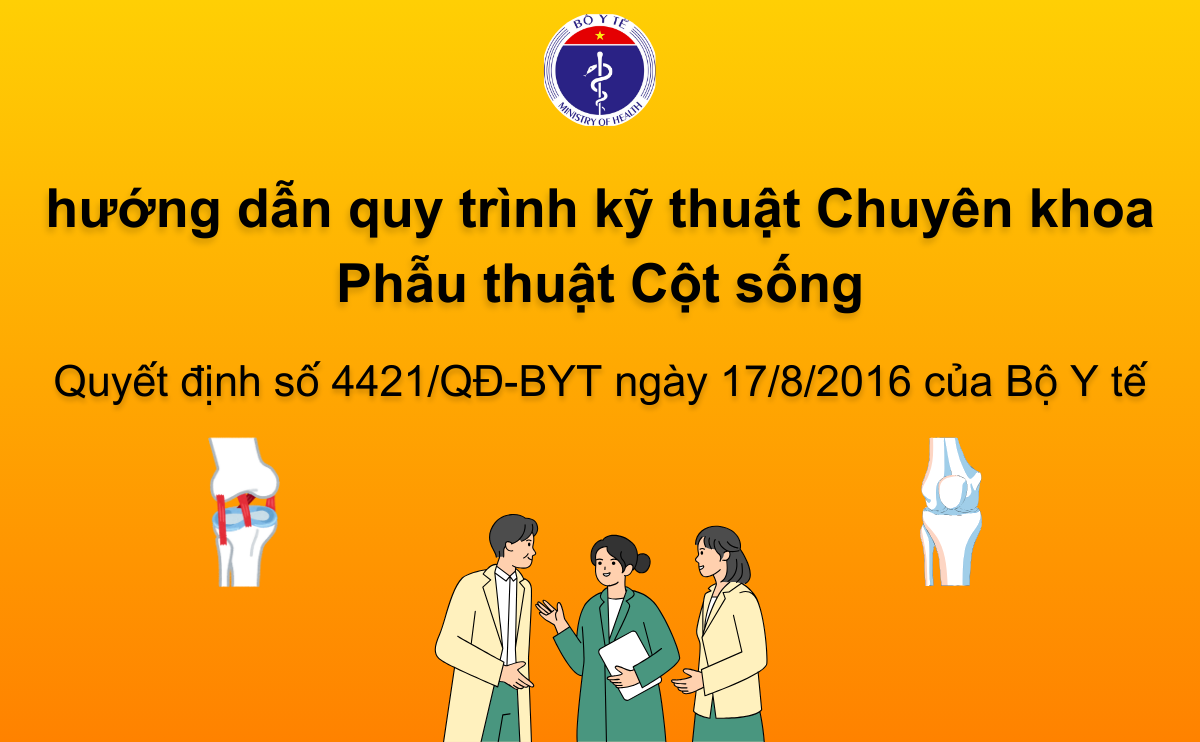 Căn cứ vào tài liệu hướng dẫn này và điều kiện cụ thể của đơn vị, Giám đốc cơ sở khám bệnh, chữa bệnh xây dựng và ban hành tài liệu Hướng dẫn quy trình kỹ thuật Ngoại khoa, chuyên khoa Phẫu thuật Cột sống phù hợp để thực hiện tại đơn vị.