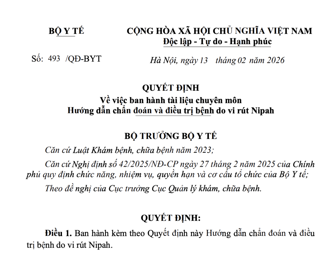 Số: 493/QĐ-BYT | Hà Nội, ngày 13 tháng 02 năm 2026 |
