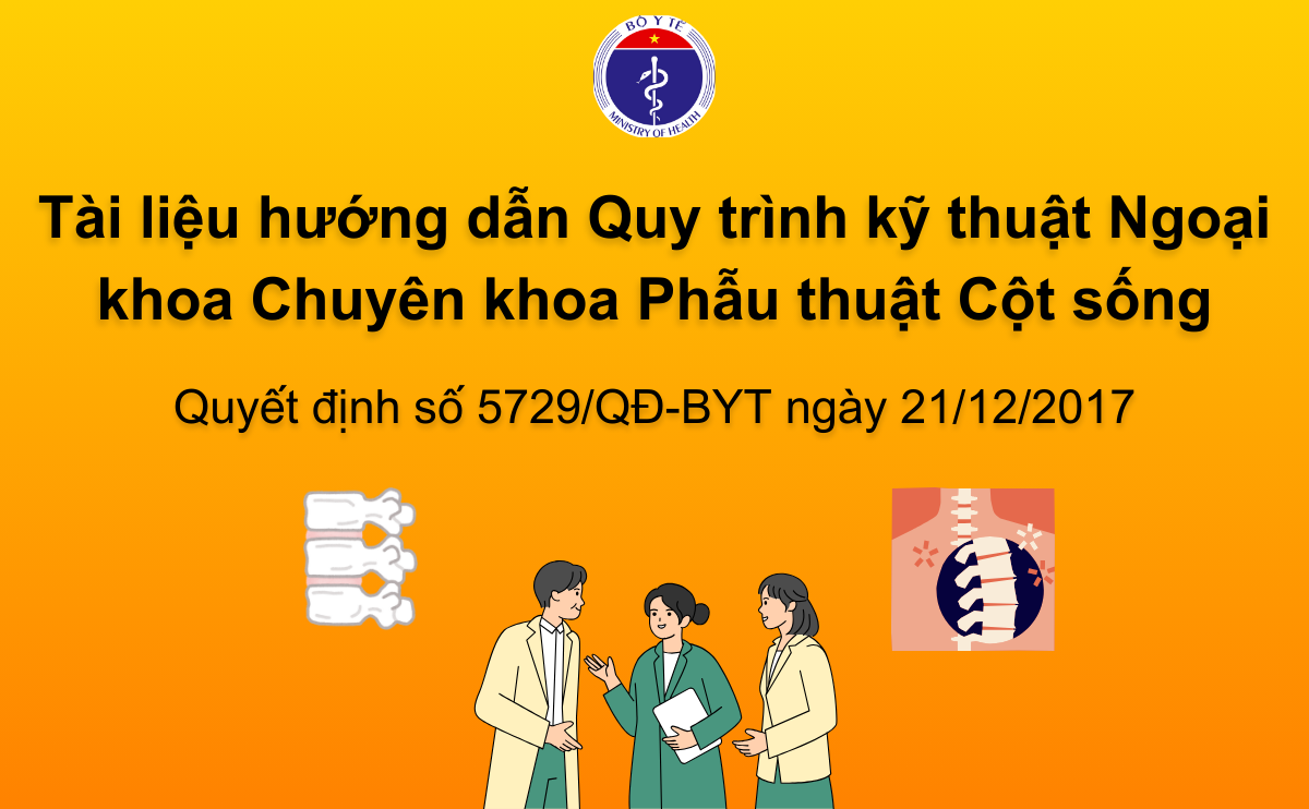 Căn cứ vào tài liệu hướng dẫn này và điều kiện cụ thể của đơn vị, Giám đốc cơ sở khám bệnh, chữa bệnh xây dựng và ban hành tài liệu Hướng dẫn quy trình kỹ thuật Ngoại khoa, chuyên khoa Phẫu thuật Cột sống phù hợp để thực hiện tại đơn vị.