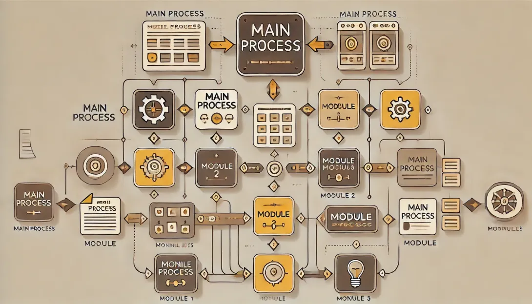 Trong quy trình module hóa, các module có thể hoạt động độc lập, nhưng khi kết hợp lại sẽ tạo thành một quy trình hoàn chỉnh. Mỗi module có thể được xem như một "khối" hoặc "đơn vị" chức năng của quy trình lớn hơn, giúp dễ dàng cập nhật, thay đổi, và tùy chỉnh theo nhu cầu.